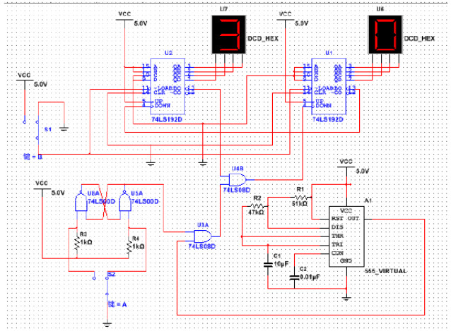 74LS192是同步十进制可逆计数器,它具有双时钟输入,并具有清除和置数等功能。可以直接级联而无需外接电路,借位和进位两输出端可级联递增计数和递减计数,使用方便。本文讲解了基于74LS192的30秒倒计时设计过程。
